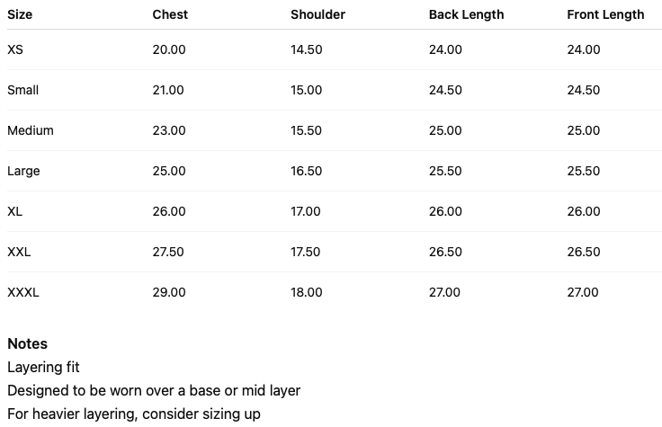 Our garments are intentionally crafted to fit slightly larger than standard sizing, making them ideal for rugged use and layering.